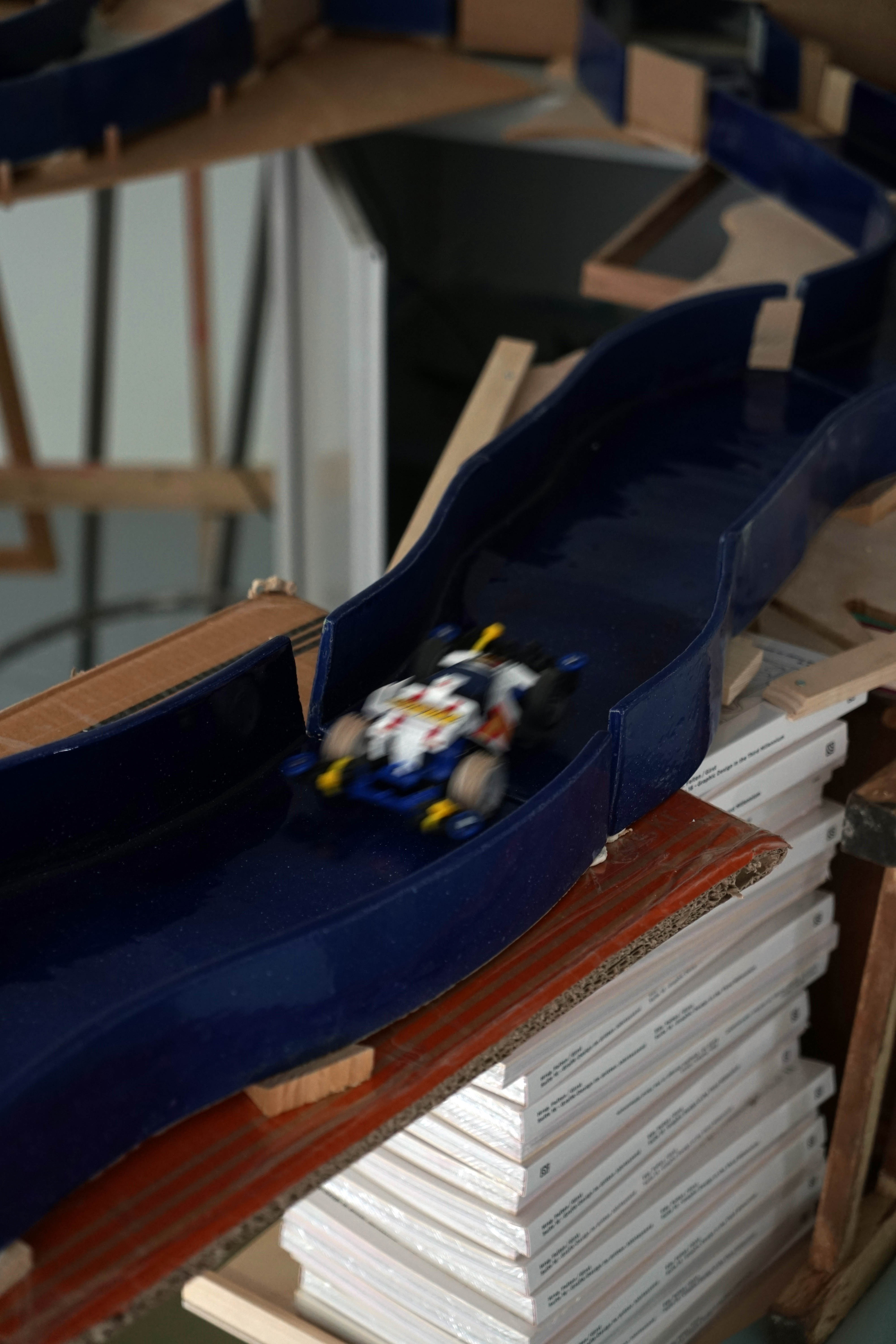 이 장난감 자동차는 1980년부터 생산되던 Tamiya Dash 1 미니카로 어린 시절에 많이 가지고 놀았던 제품입니다. 오늘날의 디지털 시대에는 사람들이 더 이상 이 구식 장난감을 가지고 놀지 않습니다. 그래서 저는 옛날 방식의 장난감 자동차에 위안을 주기 위해 이 작품을 구상했습니다.