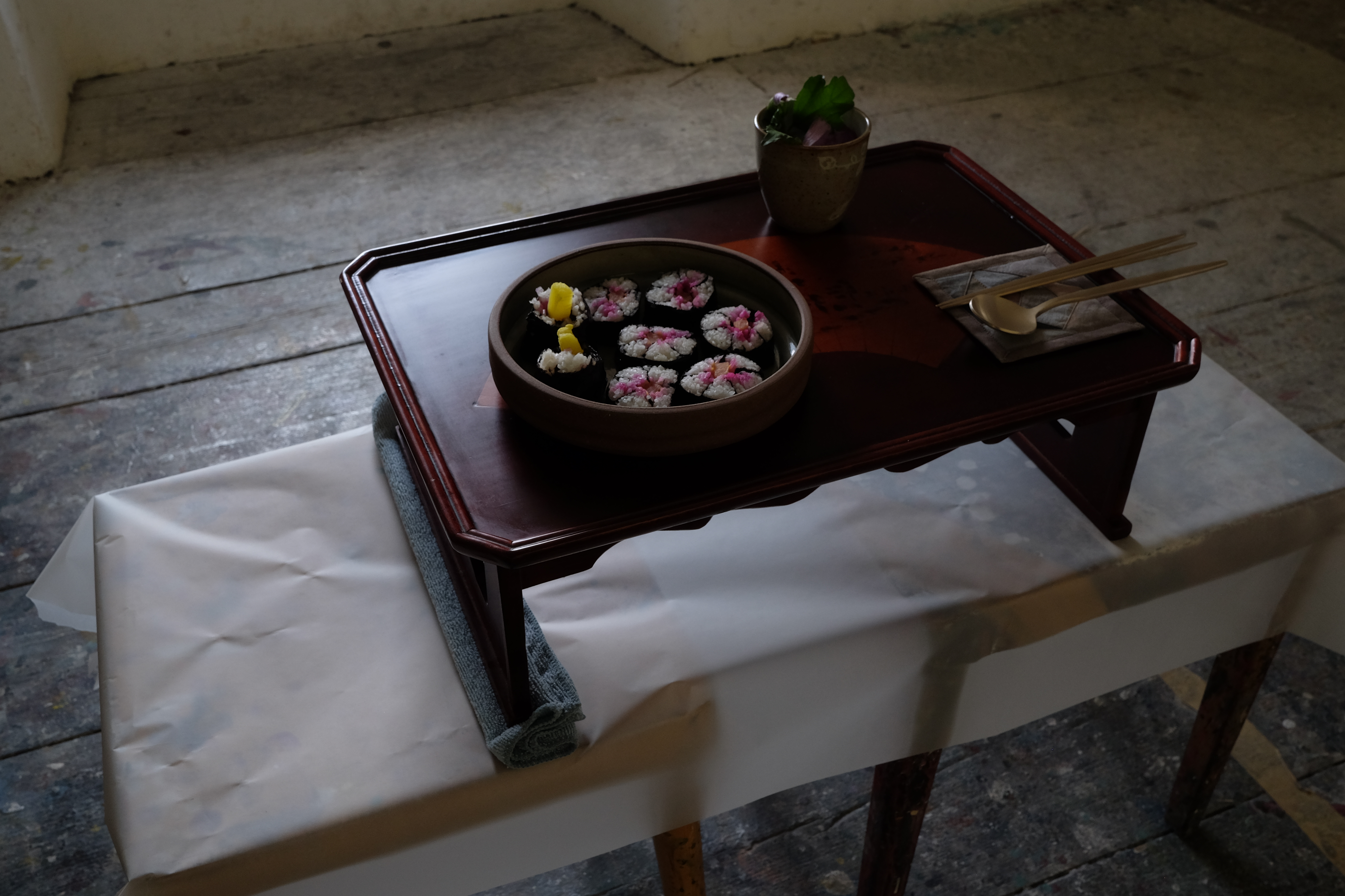 나라가 다름에 따라 문화와 상징성이 다른 것 처럼 이 차이는 곧 음식의 차이로도 나타날 수 있으며, 식용으로도 먹을 수 있는 무궁화를 김밥의 재료료 사용했습니 다. 그리고 한국 전통식기를 현지 한식 레스토랑에서 대여해 드로잉과 함께 전시 하였습니다.